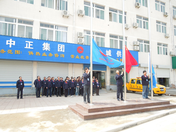 2012年4月28日,泰安市中正東城供熱有限公司辦公場所喬遷,現(xiàn)場進(jìn)行了隆重的首次升國旗、司旗儀式。集團(tuán)公司領(lǐng)導(dǎo)到場祝賀并對其現(xiàn)場環(huán)境整治情況進(jìn)行了檢查驗收。