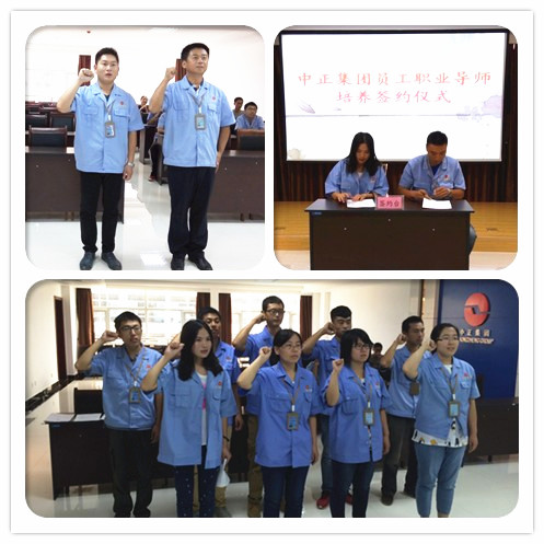 2015年9月8日上午8:30,集團駐地舉辦了員工職業(yè)導(dǎo)師培養(yǎng)簽約儀式和干部員工宣誓儀式。工程公司3名新員工與導(dǎo)師正式簽約。集團駐地9名干部員工面對司旗,莊嚴宣誓:忠誠集團事業(yè),秉承集團宗旨,弘揚集團精神;團結(jié)協(xié)作、努力進取;全心全意,爭先創(chuàng)優(yōu);為興我中正,而竭盡全力。