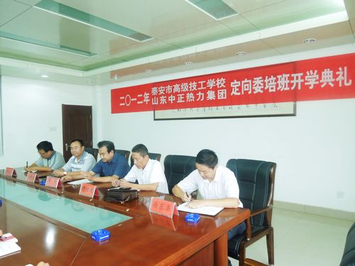 2012年9月12日上午10點整,山東中正熱力集團與泰安市高級技工學(xué)校聯(lián)合辦學(xué)定向委培班開學(xué)典禮在市高級技校會議室順利舉行,由市高級技校副校長徐東岳擔(dān)任主持,市高級技校黨支部副書記董軍、機械系教務(wù)處副主任張永生、集團總經(jīng)理助理、泰安東城公司經(jīng)理許宏建、綜合部主任李體民參加了典禮。開學(xué)典禮上董書記、許經(jīng)理作了重要講話,對校企聯(lián)合辦學(xué)給予高度肯定,對第一期定向委培的同學(xué)們寄予厚望。